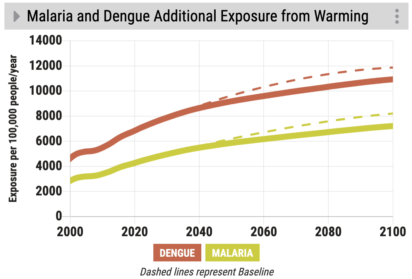 Overview for the En-ROADS graph “Malaria and Dengue Additional Exposure from Warming.”